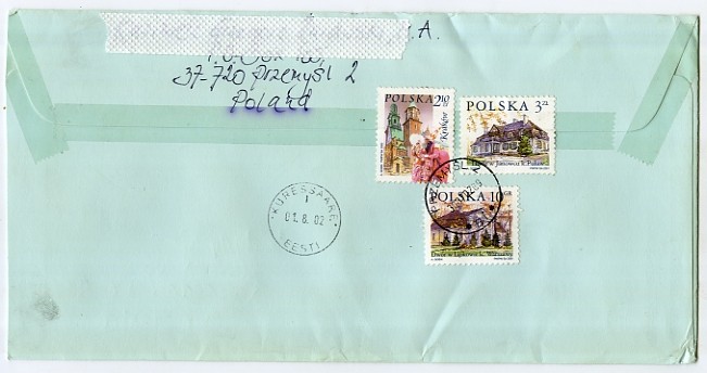 Pocztowego Przemyśl 2, w dniu 30.07.2002 roku do Estonii. Przesyłka dotarła do
