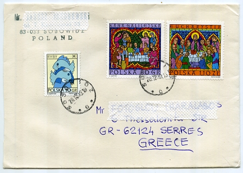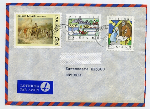 Można, a nawet powinno się – według nas- uzupełnić zbiór o walory prezentujące pocztowe wykorzystanie znaczków bożonarodzeniowych. Na kolejnych fotografiach prezentujemy przykłady całości pocztowych ofrankowanych znaczkami wydanymi przez Pocztę Polską z okazji świąt Bożego Narodzenia. Na fot.4, 5, 6 pokazujemy koperty standardowych wymiarów przesyłek listowych ofrankowanych znaczkami wydanymi w latach 1997, 1998, i 2000. Na fot. 7 jest koperta o wymiarach 250 x 175 mm przesyłki ofrankowanej znaczkami wydanymi w roku 2002 i 2003.